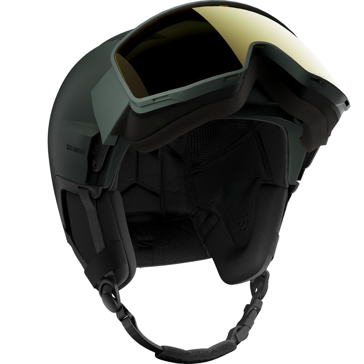 Salomon's Driver Pro SIGMA™ Photo MIPS® combines the best of visor helmets and helmet-goggle sets so you can enjoy fuss-free protection. Its SIGMA™ Photo visor provides a wide field of vision, amplifies color contrast, and adapts itself to different weather conditions, while Salomon's 360° fit adjustment technology ensures a more snug fit.