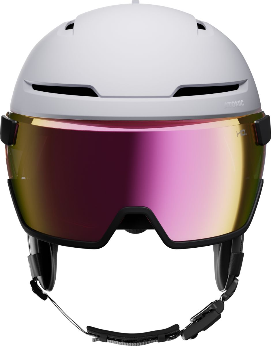 Atomic Savor GT AMID Visor Photo helmet is a high-performance visor ski helmet for piste skiers, bringing together advanced technology in a sleek, streamlined package. It’s also a Photochromic ski helmet, meaning it features Photochromic lens technology that adapts instantly to changing light, shifting levels of tint to keep your eyes fresh and glare-free all day, while the integrated patented Performance Visor delivers the secure contact pressure and sealed fit of goggles. For impact management, the GT uses AMID (Atomic Multi-Directional Impact Deflector) technology which generates up to 40% higher impact protection than industry safety standards. Your personalized fit is handled by the Atomic Live Fit system which wraps your head 360° and molds to your head shape for an instant individual fit straight out of the box.
