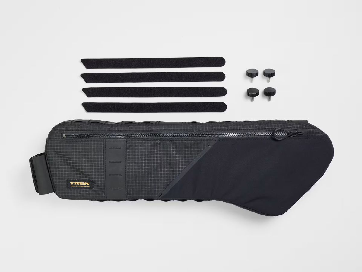 Ani nepoznáte, že vezete něco navíc. Brašnu do rámu Trek Adventure snadno zavěsíte pod horní rámovou trubku, kde vám vůbec nebude překážet. Připevníte ji pomocí pár šroubků nebo popruhů a hned máte praktický úložný prostor na všechnu výbavu, příslušenství i svačinu.