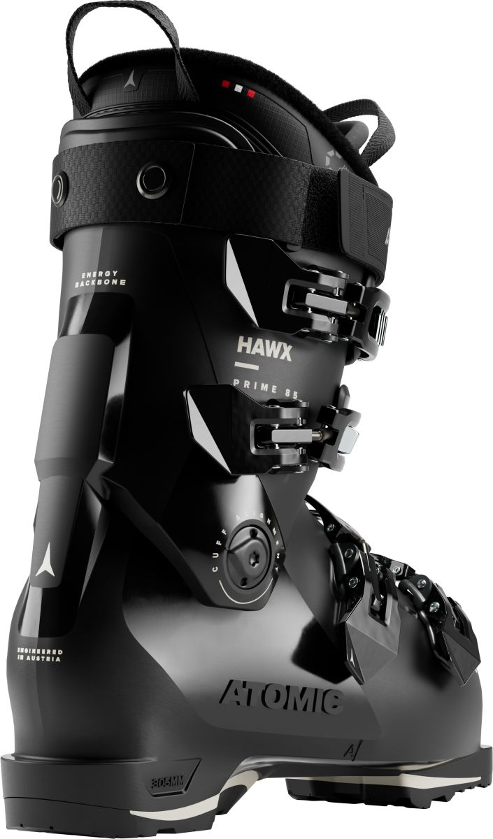 Women all-mountain skiers seeking a 100mm medium-volume alpine boot with a soft flex will appreciate the Atomic Hawx Prime 85 W. Latest Prolite construction keeps the profile slim while adding strategic reinforcement in key zones for downhill performance. Gain control when you’re initiating a turn thanks to Energy Link, a mechanical connector at the back of your boots. A supportive Mimic Silver liner with Ankle Lock gives a precise fit out of the box and can be heat-molded for a contoured fit through Mimic technology. Customize shell and cuff with heat-fitted Memory Fit in minutes so they precisely shape around your feet. To accommodate the unique shapes of women’s calves, the boot has a lower cuff and more volume in the leg. Remove the Adaptive Fit System (AFS) Cuff spoiler to create even more space around the calf.