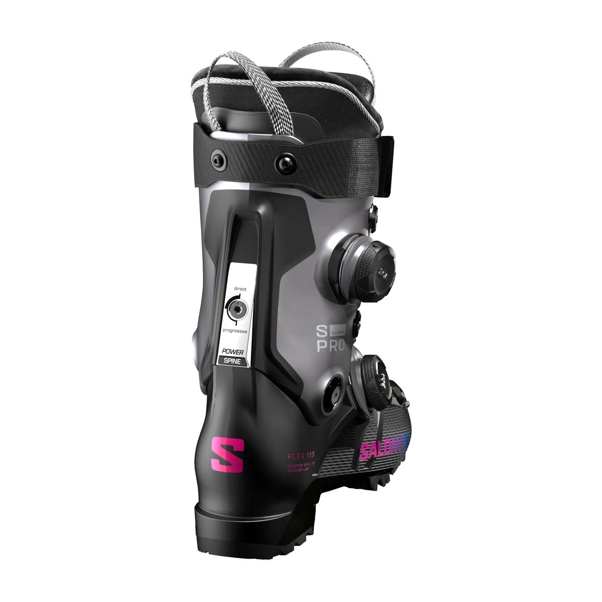 Salomon's S/Pro Supra Dual BOA® 115 isn't just another boot – it's a revolution in micro-adjustable sensitivity. The two BOA® dials work and women-specific cuff provide exceptional wrapping on the upper cuff and fine-tuned comfort on the lower shell, so skiers can enjoy unmatched support and a precise fit on every slope.
