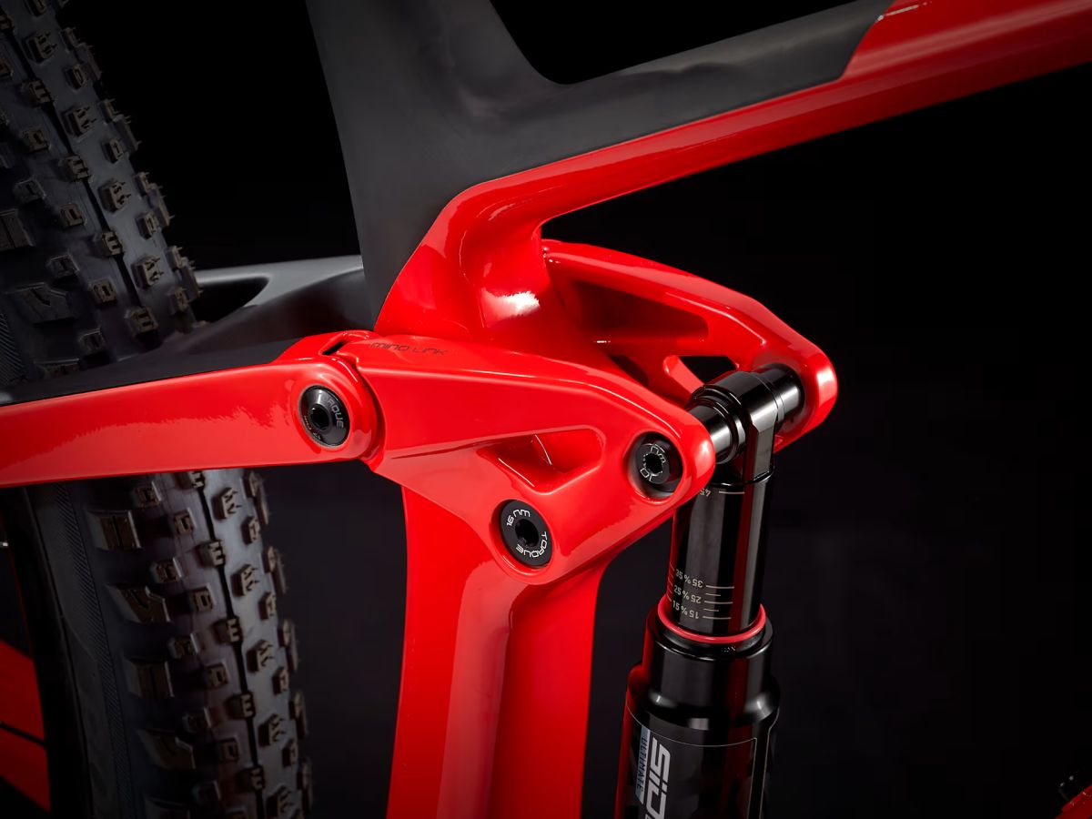 Hlavní rám a vzpěry z karbonu OCLV pro horská kola, kónická hlavová trubka, Knock Block, vnitřní vedení lanek Control Freak, ochrana Carbon Armor, hořčíkový kolébkový spoj, Mino Link, ABP, Boost148, zdvih 115 mm.